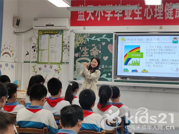 六年级同学正处于小升初的关键时刻,为了帮助毕业生们减轻课业负担,平稳度过这个阶段,蓝天小学党支部策划了“党徽闪耀,为蓝天毕业季护航”心理健康教育专题活动,通过党建带队建活动,让学生拥有积极健康的心态,认清自我,适应六年级紧张而忙碌的学习氛围,提高抵抗挫折的能力。