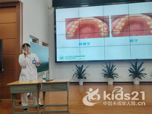 活动现场,贺霞琳医生以趣味互动开启科普之旅。专家们借助图文并茂的PPT,先抛出“牙齿喜欢吃什么”“牙齿不喜欢吃什么”等趣味问题,瞬间点燃孩子们的讨论热情。随后围绕爱心护齿饮食指南,详细讲解了富含钙、磷的健齿食物,富含维生素的护龈食物,以及富含粗纤维的洁齿食物,同时列出精制糖类、碳酸饮料、粘性甜食、酸蚀性食物等“蛀牙零食黑名单”,让孩子们清晰知晓饮食与口腔健康的密切关联。