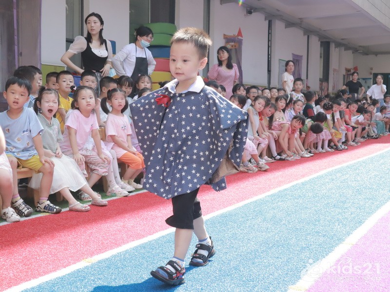 在时装走秀中,展现了用吸管、纸盒、布条、报纸、树叶、冰棒棍等物品创作的亲子艺术作品。伴着动感的旋律,孩子们纷纷化身小模特,摆出各种造型,自信、快乐地展示着自己设计的服装,现场也是阵阵掌声,为他们喝彩。