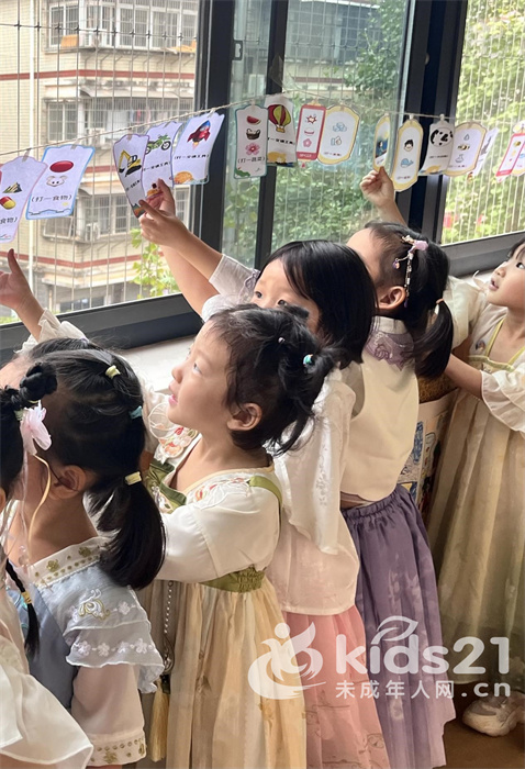 “绘长卷画”活动中,孩子们手握画笔,以“我爱我的祖国”为主题,将鲜艳的五星红旗、雄伟的天安门、可爱的玉兔等元素融入画作,稚嫩的笔触勾勒出对祖国妈妈的祝福。“月亮的好朋友(打一星球)”“样子扁又圆,味道甜又蜜(打一中秋食品)”等趣味灯谜,让孩子们在你一言我一语的猜测中,加深了对中秋习俗的认知;而最受欢迎的当数灯影游戏区,孩子们手持自制的月亮、玉兔,在灯光映照下演绎简单故事,光影交错间满是欢声笑语。