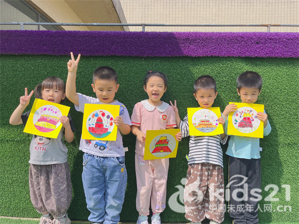 艺术活动是孩子们表达爱国情感的重要方式。孩子们用巧手为祖国献上祝福:小班的蘸画《礼赞祖国》《烟花》;中班的《生日蛋糕》和《多彩花灯》;大班的创意美术《祖国山河》,呈现的不仅是一幅幅手工作品,更是一颗颗小小爱国心。