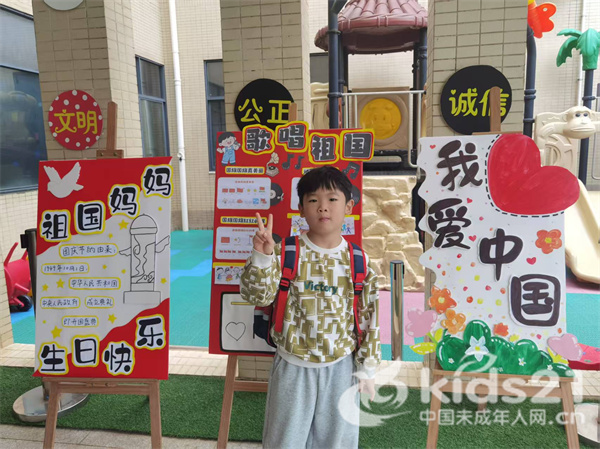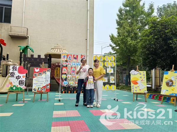 操场上飘扬着鲜艳的五星红旗;草地上摆放着国庆主题展板;各班教室也用灯笼、彩带、幼儿手绘的作品装饰,为活动营造了浓浓的节日氛围。