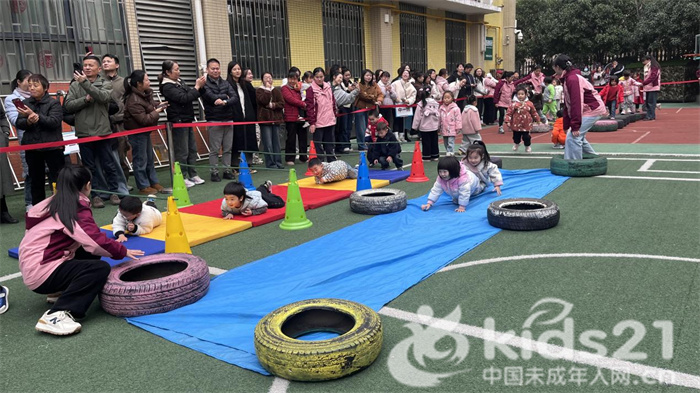开幕式结束后,下午的游园活动热闹登场。套圈小能手、投壶大比拼、小马运粮等趣味游戏在操场同步开启。大、中、小班幼儿分时段有序参与,孩子们有的踮脚套圈有的专注投壶还有的合作运“粮”,一张张笑脸上满是兴奋与喜悦。老师们则化身“闯关引导员”,全程守护孩子们的快乐时光,现场处处洋溢着欢声笑语。