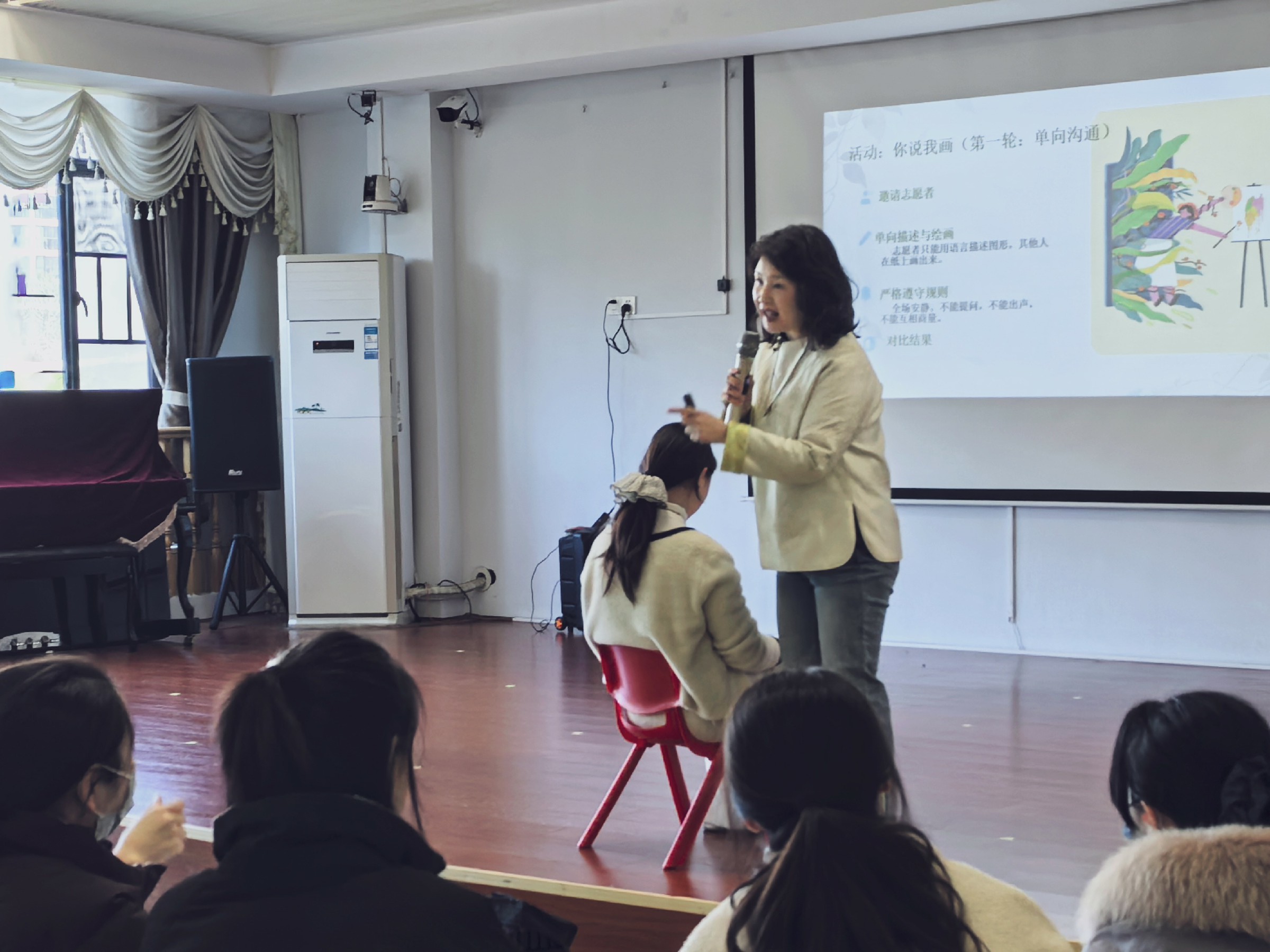 团辅以趣味十足的“你说我画”游戏破冰,两轮截然不同的沟通模式,让老师们收获了直击内心的感悟。单向沟通时,因无法提问、澄清,大家画出的图形与原图相去甚远,现场满是困惑与无奈;而双向沟通开启后,自由的提问、及时的反馈让信息传递精准高效,成品也高度契合。鲜明的对比,让老师们深刻体会到:沟通的关键从不是“说了什么”,而是对方“收到了什么”,那一刻,大家心中对“双向沟通”的重要性有了最直观、最深刻的认知。