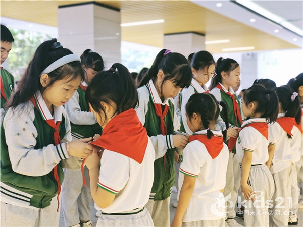 活动现场,同学们带来了精彩的节目。舞蹈《请党放心 强国有我》是孩子们的郑重承诺和庄严表白;红色党史故事《迎难而上 夺冠冬奥》讲述了运动员武大靖勇夺冬奥冠军的故事;社团串烧秀展现了各个社团同学们的无限活力。“我在队旗下宣誓:我热爱中国共产党,热爱祖国,热爱人民……”一批一年级的小朋友光荣地加入少先队,高年级的哥哥姐姐们给他们戴上鲜艳的红领巾。