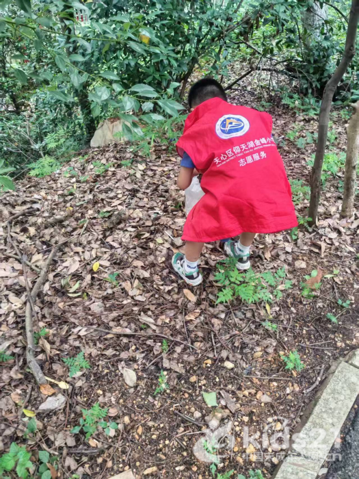 上午九点,同学们化身“生态侦探”,分小组展开地毯式排查。草坪深处、石阶缝隙、林荫步道,专注的身影在细雨中跃动:有的同学跪地钩出卡在树根间的奶茶杯;有的同学发明“筷子夹烟头”妙招清理排水孔;有的同学将垃圾分类装入垃圾袋。