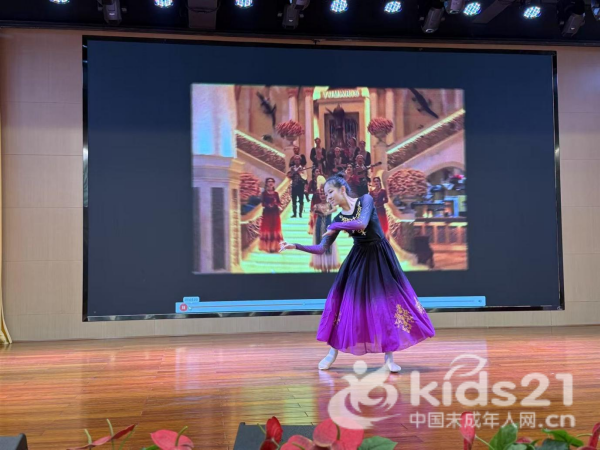 1905班的独舞《花儿》,舞者宛如一朵娇艳的花朵,在舞台上尽情绽放。她的身姿轻盈优美,每一个手势、每一个眼神都充满韵味。随着音乐的起伏,她时而旋转,时而舒展,那灵动的舞姿,仿佛是花儿在风中摇曳,诉说着青春的美好与纯真。