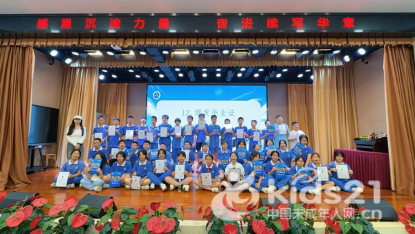 节目表演结束后,最激动人心的时刻到来了。校长雷明和四位校级领导走上舞台,为每一位毕业生颁发毕业证。这一张张鲜艳的毕业证书,不仅是同学们六年学习成果的见证,更是他们开启人生新篇章的钥匙。当同学们接过证书的那一刻,脸上洋溢着自豪与喜悦,眼中闪烁着对未来的坚定与向往。