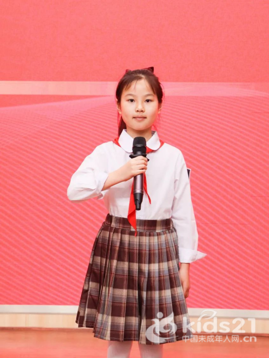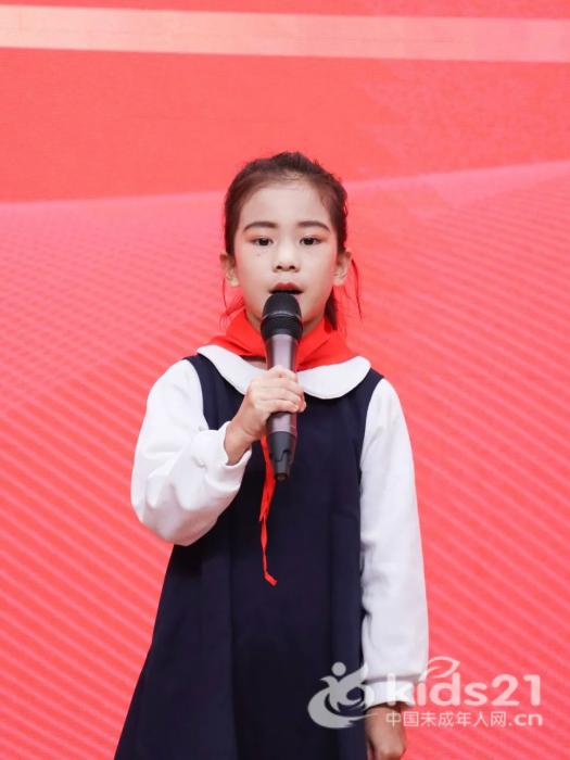 少先队员代表潘梓萱手拿话筒的样子,让人想起春天里努力拔节的新竹。她用稚嫩的声音表达了作为一名新队员的喜悦与自豪,并表示要严格要求自己,向身边榜样学习,争做新时代好少年!