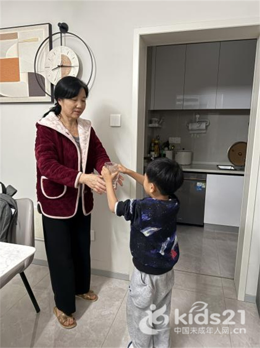 一张小小的“重阳节集赞卡”,将节日的仪式感从幼儿园延伸至家庭,化作一幕幕温暖的孝心行动。孩子们在家中为爷爷奶奶捶背揉肩,学唱敬老童谣,陪着家人散步聊天……每一次用心的陪伴,都被定格在照片里:那弯腰递上的一杯热茶,那落在肩头的一双小手,无不传递着对长辈最纯真的敬意。