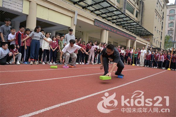 在一二年级的趣味运动赛场上,“蚂蚁运粮”项目中,“雷小锋”们化身协作的小蚂蚁,专注传递;“袋鼠跳”比赛中,孩子们化身为蹦跳前行的“小袋鼠”,奋力冲向终点;“摸石头过河”环节,他们手脚协调,沉着前进;亲子项目中,大小选手携手参与,场面温馨感人。
