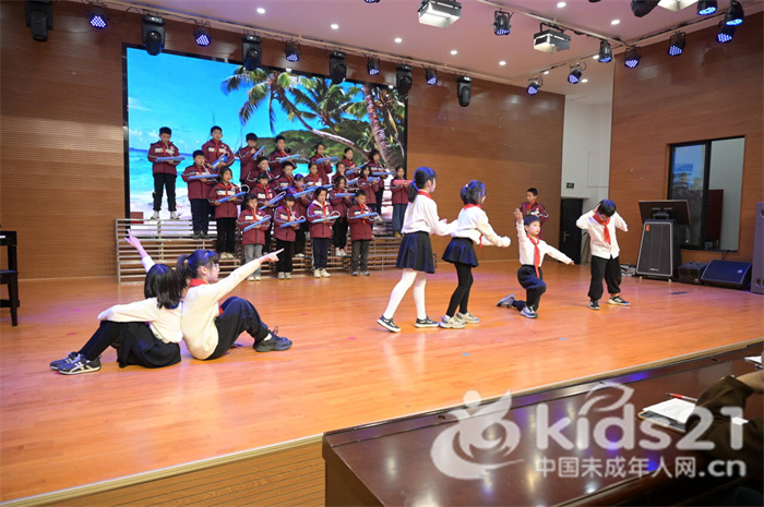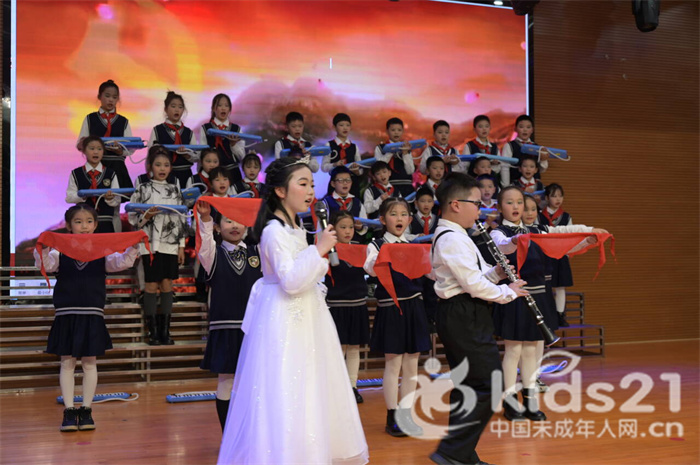 四年级“传统文化秀之器乐专场”,以《国家》《歌唱祖国》等经典曲目为桥梁,在口风琴主旋律的引领下,融入钢琴、单簧管、长笛及打击乐的和谐交响,既彰显器乐的古典韵味,又饱含对祖国的深情礼赞,成功实现“器乐艺术的现代化表达”。