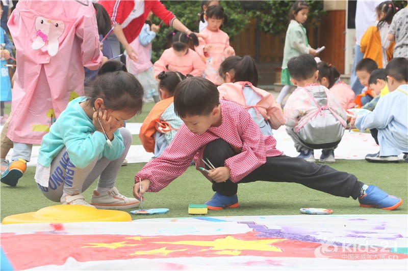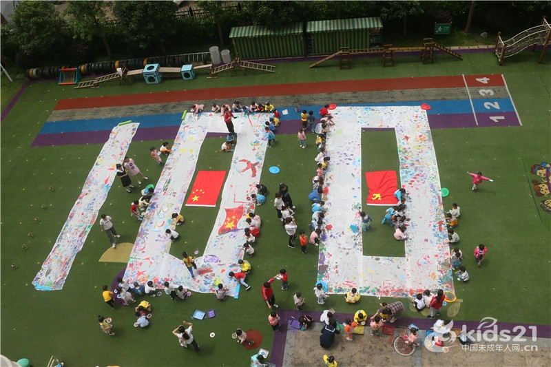 27日上午,白沙乾城园的孩子们在一块长约14米、宽10米的“100”字样的画布上作画。国旗、党徽、天安门、东方明珠等元素,在孩子们灵巧小手的描绘下,变得生动立体。你配色、我涂抹,你一笔,我一划,大家默契配合,创作十分投入,丝毫顾不上脸上、衣服上沾上了颜料,纷纷通过绘画抒发对祖国和党的热爱。对于什么是中国共产党?孩子们这样描述,“我爸爸是共产党员,他说中国共产党就是我们中国的执政党。”“中国共产党应该是中国的超级英雄。”“我觉得,中国共产党是新中国的妈妈。因为,没有共产党就没有新中国。”