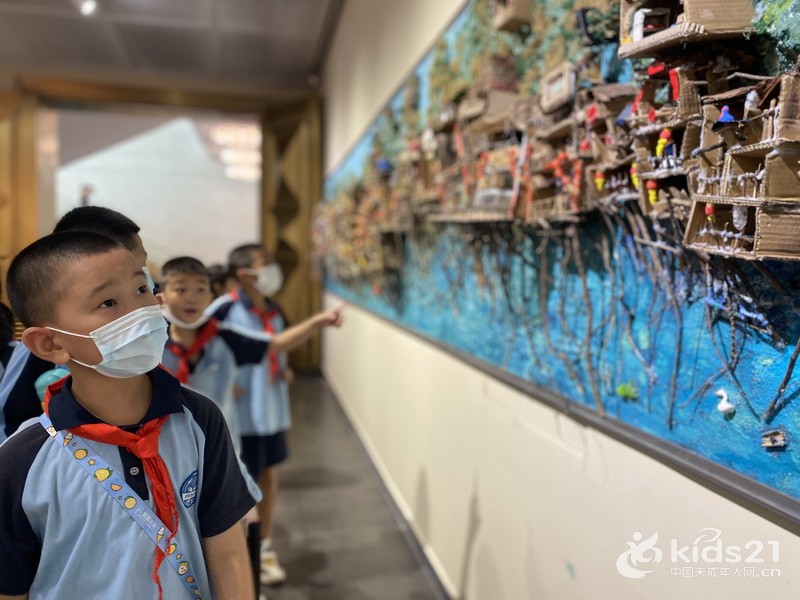本次展会收藏了少儿们众多极具创意和想象力的作品,作品按照经典文化传承、综合材料演绎、馆藏经典童画、民族民间荟萃、缤纷立体装置、闪耀稚趣动画等分为六大主题。同学们穿梭在各个展馆,琳琅满目的美术作品让同学们流连忘返。