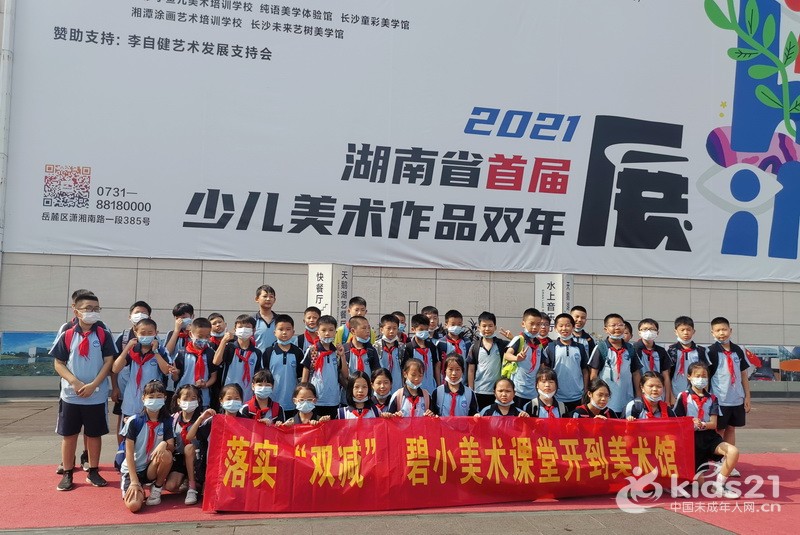 9月8日上午,天心区碧湘街小学组织中、高年级学生来到李自健美术馆,参观“2021年湖南省首届少儿美术作品双年展”,将美术课堂搬到了美术馆。