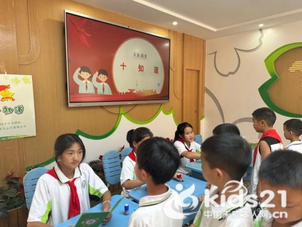 在“十知道”环节,预备队员们通过回答问题,展现出对少先队组织基本知识和理念的理解,从少先队的创立者到少先队的作风等知识,都在他们自信的回答中一一呈现。
