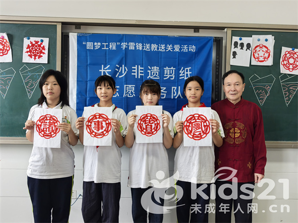 活动中,长沙市剪纸艺人、非物质文化遗产传承人刘志敏,以“为祖国庆生”为题,展示了从象征团结爱国的“红心向党”到寓意国泰民安的“吉祥窗花”,再到庄严雄伟的“天安门”,一幅幅栩栩如生的作品在同学们面前徐徐展开,引来阵阵惊叹。
