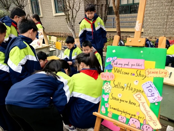 值得一提的是,本次活动特别强调“劳动最光荣”的教育理念。从寒假期间分组建队、筛选货物、设计双语广告语,到开学当天的摆摊布置、推销叫卖、收摊整理,全过程均由学生自主完成。三至六年级的英语教师提前在课堂上教授了购物相关句型,孩子们利用寒假练习,当日终于“实战演练”。