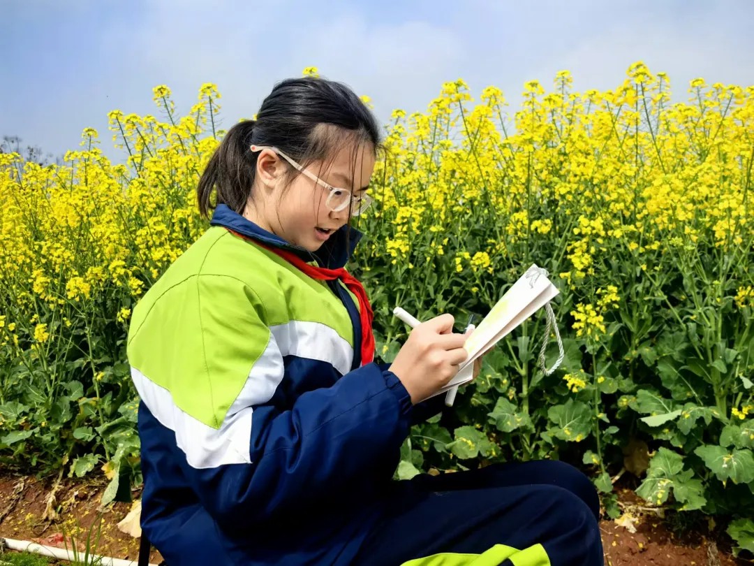 孩子们在花田中完成的一幅幅画作、一篇篇观察笔记,不仅是学习成果的展示,更是他们深度认知家乡、热爱生活的体现。这种扎根乡土、贴近生活的教育,让孩子们在游中学、在学中悟,真正实现了知行合一。