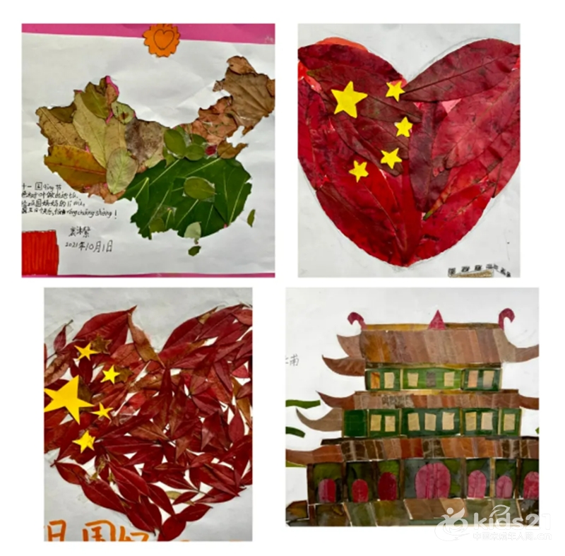 国庆主题的树叶画