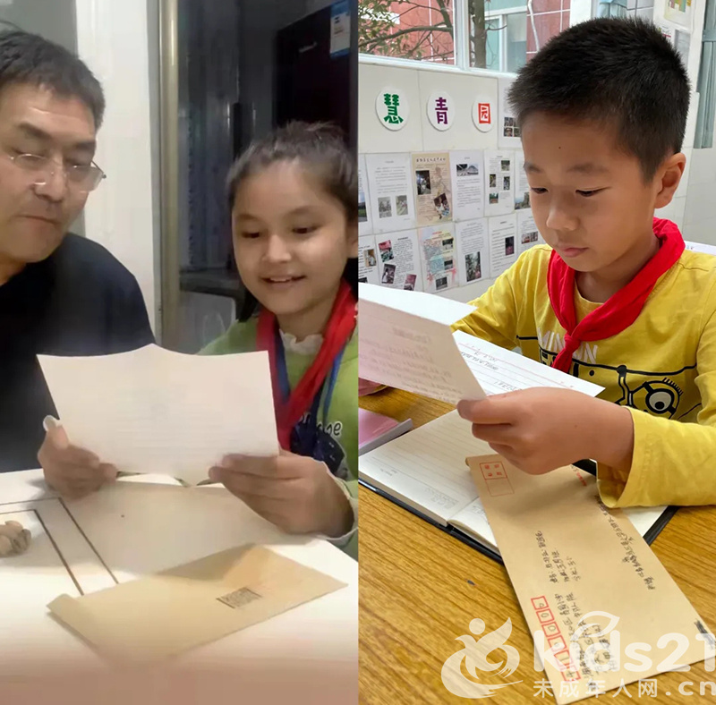 青园小学万芙校区与新疆吐鲁番市高昌区第五小学开展手拉手活动,他们在“云端”相见,同上一次队课,活动结束后,两地的少先队员们互通书信来了解彼此。近日,1908中队的46名少先队员收到了来自远方朋友的来信。