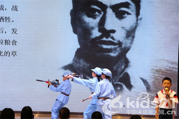 历史大幕徐徐拉开。在这场伟大的抗日战争中,中国人民以铮铮铁骨战强敌、以血肉之躯筑长城、以前仆后继赴国难,涌现出无数革命先烈,谱写了惊天地、泣鬼神的雄壮史诗。抗日英雄杨靖宇、赵一曼的事迹,让台下的小观众们情不自禁地流下了泪水。