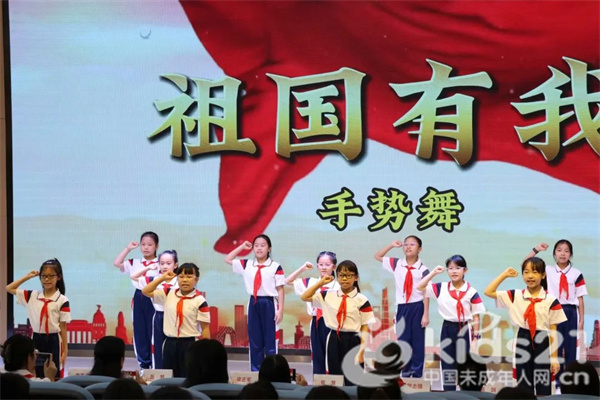 最后是《祖国有我》手势舞表演,在“我们阳光下成长,沐浴祖国的温暖,红领巾随风飘扬,把未来点燃”的歌声中,队员们将新时代少年的志向和对祖国的热爱娓娓道来。