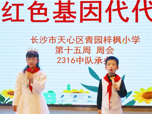 5月16日,青园梓枫小学开展“红领巾爱祖国,红色基因代代传”为主题的少先队活动暨“青枫队校”第五十三期思政课。本次活动由2316中队承办。