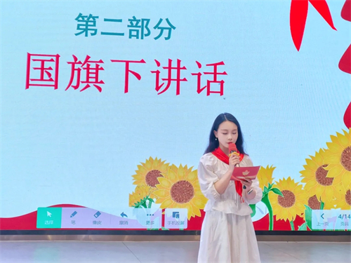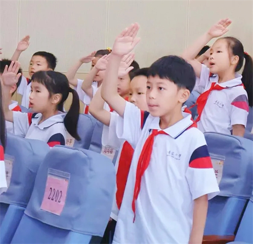 从南湖红船的悠悠波光,到校园领巾的鲜艳飘扬,队员们用清澈童声,将“党的怀抱最温暖”的心声轻轻诉说,充满深情的话语,如同永不熄灭的火种,在一代又一代的传承中熠熠生辉、久久传颂!