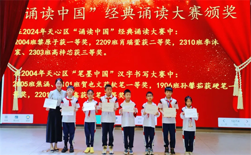 在表彰仪式上,大队辅导员廖莹润嘉老师宣读天心区“诵读中国”等获奖表彰名单,优秀队员如同璀璨星辰,为全体少先队员树立了榜样,激励着青枫少年践行责任、勇于担当。