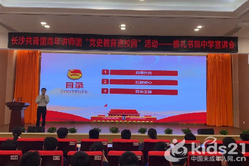 雅礼书院中学高度重视青少年的爱国主义教育,结合学校教育工作实际,以党建促团建,用心搭建良好学习平台,通过党史宣讲会、主题班团活动、德育大课堂、参观学习等方式引导青少年学党史、感党恩、跟党走,让广大党员教师及团员学生在感悟红色精神中厚植爱党情感,砥砺爱国情怀,以青春之歌庆祝建党100周年。(雅礼书院中学 邵隽)