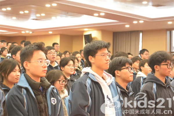 会议最后,全场师生并肩起立,他们目光坚毅、右拳高举,在2112班何海洋同学的带领下,大家激情澎湃、高呼誓词。他们的誓词似春雷、似松涛、似战鼓,让整个会场凝聚了一股无可抗拒的力量,使人激情豪迈、斗志昂扬!