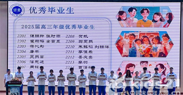 上午9点半,体育馆内光影流转。大屏幕上“青葱岁月,有你有我”回忆片滚动播放:运动会的呐喊、实验室的专注、课间操的齐整、鼓劲冲刺的握拳,将三年时光酿成一坛暖酒,熏得人眼眶发热。校武术队的刚劲招式破空而来,少年侠气,恰是“自强不息”校训最鲜活的注脚。