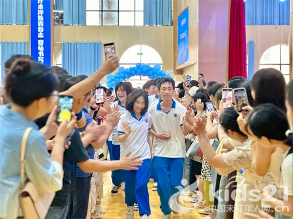 礼成时,体育馆外的“成人门”已静静伫立。校领导、老师、家长分列两侧,目光目光温柔而坚定,充满不舍更充满期待。《少年》的旋律响起,学生们依次穿过门扉:与班主任击掌,和任课老师拥抱,对家长说“辛苦了”……这一步,跨过的不仅是一道门,更是从“少年”到“成人”的蜕变。是从“被守护”到“去担当”的蜕变——门内是三年的温暖港湾,门外是一生的星辰大海。