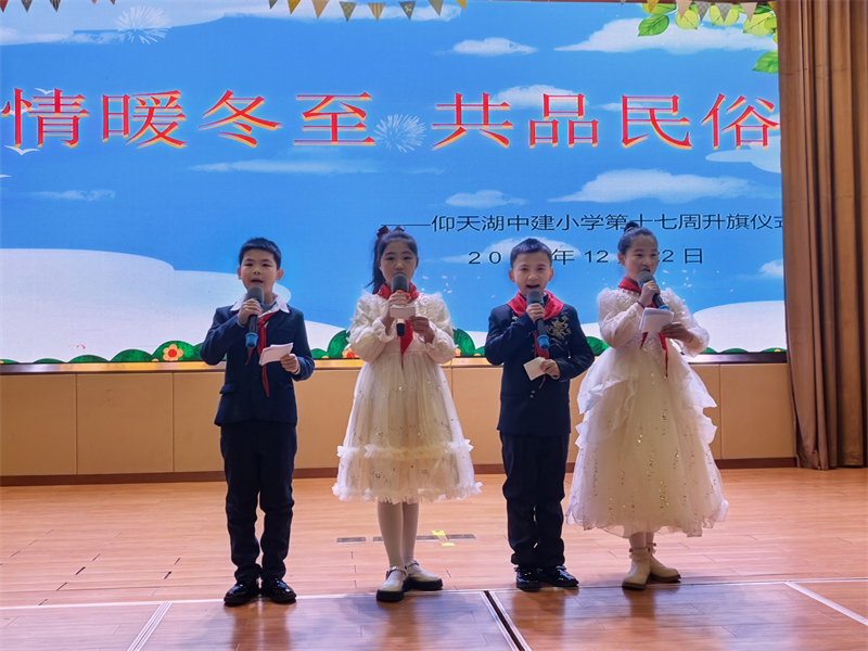 本次仪式由四(1)中队承办,曹珺齐、江卓、王子安、王梓僮四位队员共同主持。伴随着“冬至大如年,人间小团圆”的温暖开场,全校师生共同走进这一充满温情的传统节日。