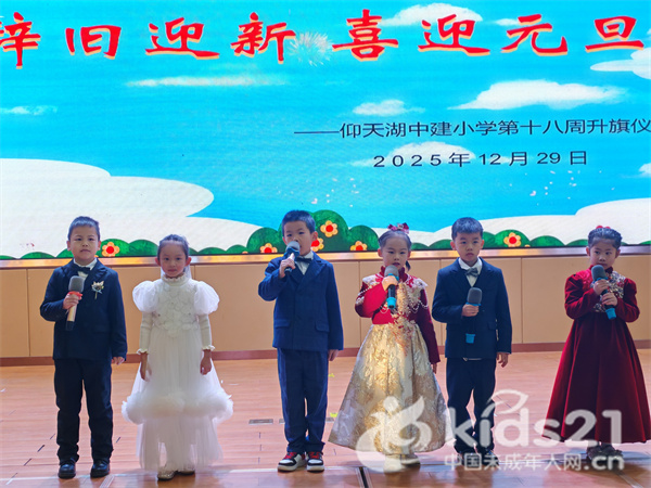 冬日暖阳洒满校园,元旦欢歌奏响序曲。2025年12月29日,仰天湖中建小学迎来第十八周“童心筑梦 喜迎元旦”主题升旗仪式,本次升旗仪式由一(4)班周若伊、李舒颜、汤彬烨、鲁怀屿、蒋昕玥、邱俊诚六位同学担任主持,全校师生齐聚一堂,在庄重的仪式中辞旧迎新,共赴新年之约。