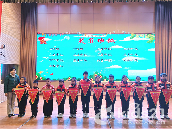 荣耀时刻更添新年喜悦,仪式现场还举行了颁奖环节。学校对芙蓉班级获奖中队进行表彰,学校书记为获奖代表颁发流动红旗。