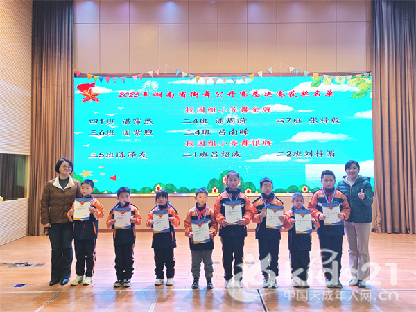 同时,现场公布2025年湖南省街舞公开赛总决赛获奖名单,以及校、区两级数学“微研究”“微设计”“微讲题”比赛的优异成绩,肖子轩、彭憬洋等同学分获各级别特等奖、一等奖等荣誉。学校领导分别为获奖队员颁发证书与奖牌,鼓励大家在新的一年里继续在学习与特长领域勇攀高峰。