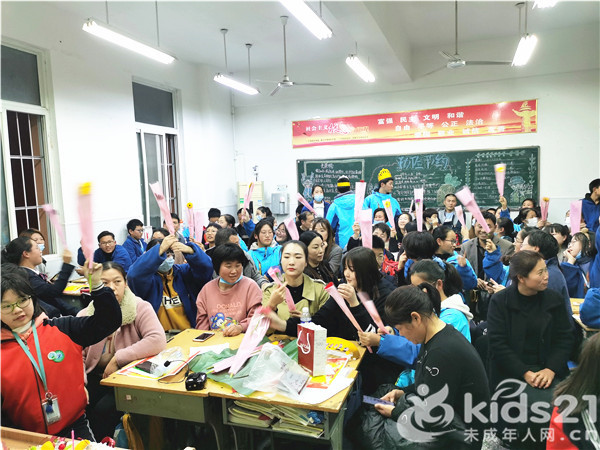 石倩倩是这个班的班主任,她从来到沁园中学之后,就时刻牢记学校“沁德润智,为幸福人生奠基”的办学理念,并最终和学生达成了“把学习当成生活的一部分,要精致些,快乐些,幸福些”的治班理念。为此,石老师始终把每一个学生的幸福放在第一位,内心始终记得每一个学生的生日,并创新性的在每个月为当月过生日的学生,共同举办幸福生日会。在11月5日期中考试结束后,她又灵机一动决定把11月份的幸福生日会和期中家长会合二为一,举办了这次由学生、家长、科任教师共同参与的主题班会。
