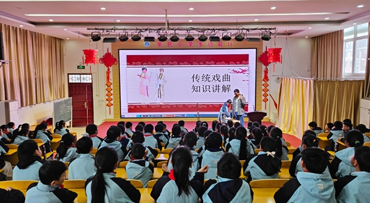 近年来,滑县锦和街道英民小学持续推进传统戏曲进校园活动,通过设立兴趣班、开设“第二课堂”和社团等形式,让学生们与戏曲“亲密接触”,感受传统戏曲文化的魅力。(河南省滑县锦和街道英民小学 储广军)
