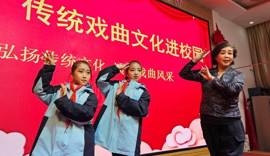 戏曲老师为学生们表演豫剧《桃花庵》选段 储广军 摄