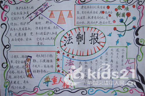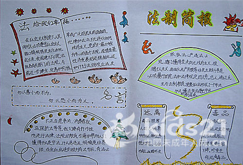 此次活动,同学们积极参与,精心选择素材、设计版面,充分发挥自己的想象力。一幅幅精美的小报别具匠心、图文并茂、新颖别致。生动形象的报头,健康向上的内容,书写工整美观,充分展示出孩子们对法律的理解、感悟。