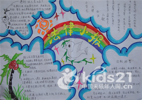 同学们在制作手抄报的过程中,不但学到了法律知识,同时也增强了创新能力、审美能力。经学校评审,分别评出了优秀作品进行展评。(江苏省徐州市铜山区利国实验小学丁修武、高杨)