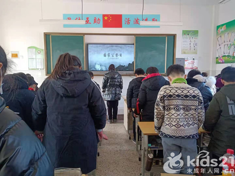 班会课上,各班师生神情凝重,通过一分钟的默哀仪式向遇难同胞表达哀思。各班级在老师的带领下观看了有关南京大屠杀的图片文字,一个个触目惊心的画面再现了当年日本侵略者的野蛮暴行,无辜同胞惨遭杀戮,震撼着孩子们幼小的心灵,也激发了学生的爱国情感,警醒全体同学要谨记南京大屠杀的屈辱历史,奋发图强,传递新时代“为中华民族崛起为读书”的正能量。(江苏省徐州市铜山区利国镇小学中心校 马厚海 王飞)