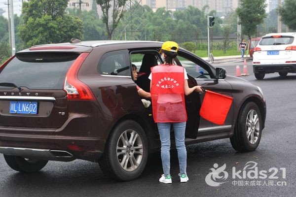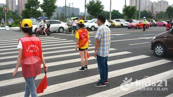 6月28日,第一批家长志愿者正式上岗!他们头戴小黄帽、身穿红马甲,用指挥旗拦停车辆,让学生安全通过;吹响口哨,提醒学生和家长走人行道、注意信号灯;组织学生排队,引导学生上下公交车;制止乱停乱放的私家车,劝说随意穿梭的电瓶车……峨眉二小家长志愿者疏导交通的身影成了学校里的一道靓丽的风景线,他们用自己的志愿服务,为学生搭建了一条安全、有序、文明的上放学绿色通道。(四川省峨眉山市第二小学 朱劲松)