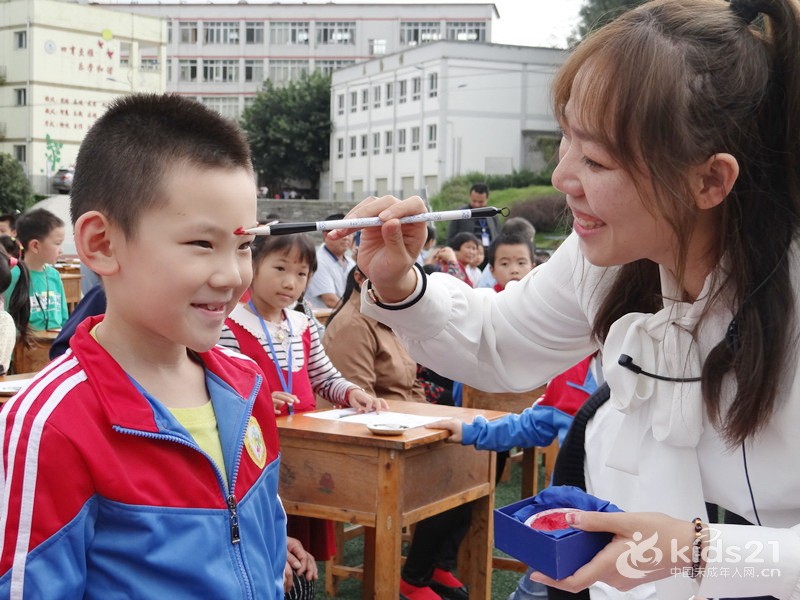 “童蒙之学,始于衣冠;先正衣冠,后明事理。”在正衣冠环节,全体家长为孩子检查衣扣、整理领口、拉直衣角,使孩子们穿戴整齐、洁净,变得更加可爱了。在朱砂启智环节,校级领导、一年级教师拿起画笔,蘸上朱砂,在孩子额头中间点上红痣,寓意孩子从此眼明心明,好读书,读好书,成为一个有智慧的人。
