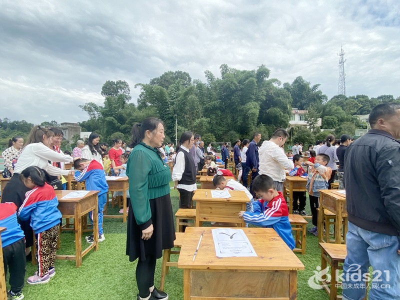 9月24日,四川省泸州市纳溪区合面镇中心小学组织一年级新生举行“朱砂启智·开笔启蒙”为主题的“开笔礼”活动。学校领导、德育处全体成员、一年级师生及家长共230余人参加了活动。