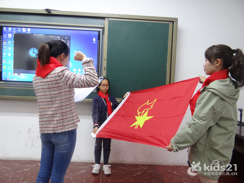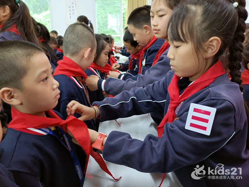 “从今天起,我们就成为了一名光荣的少先队员,我感到无比骄傲和自豪。红领巾是国旗的一角,是革命先烈用鲜血染成的,我们一定要珍惜它、爱护它……”新队员代表周瑾菀表示,将在红领巾的陪伴下勤奋好学,不断进取,严格要求自己,自觉遵守学校纪律,尊敬师长,团结同学,在校听老师的话,在家听父母的话,争当一名优秀的少先队员,为胸前鲜艳的红领巾增添光彩。