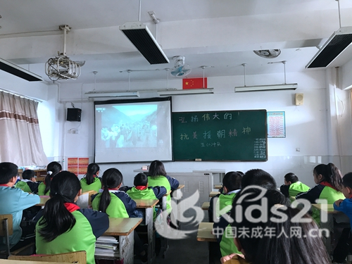 11月17日,学校组织开展纪念中国人民志愿军抗美援朝出国作战70周年主题班队会,活动分为观看影片、学生感悟发言、教师总结、学生书写观后感等环节。放映结束后,各班老师组织学生代表走上讲台,分享感悟,交流心得。最后,班主任做总结发言,引导学生认知新的历史条件下的挑战,要求全体学生牢记历史,不忘使命。