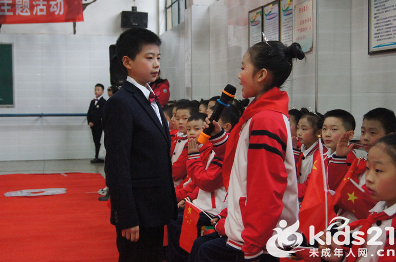 “我们是共产主义接班人,继承革命先辈的光荣传统,爱祖国,爱人民,鲜艳的红领巾飘扬在前胸……”在激昂的《中国少年先锋队队歌》的歌声中拉开了活动的序幕。活动分为“亿红色足迹、传革命精神、逐时代梦想”三个篇章,少先队员们相继进行了故事演讲、诗词朗诵、观看视频、歌舞表演、现场采访、书画展示等才艺展示,用稚嫩的歌声、优美的舞姿、精彩纷呈的表演,充分展示了当代少年队员的风采,赢得现场师生阵阵掌声。